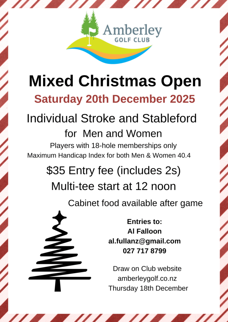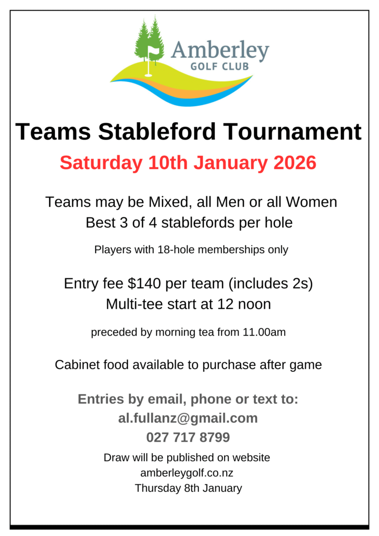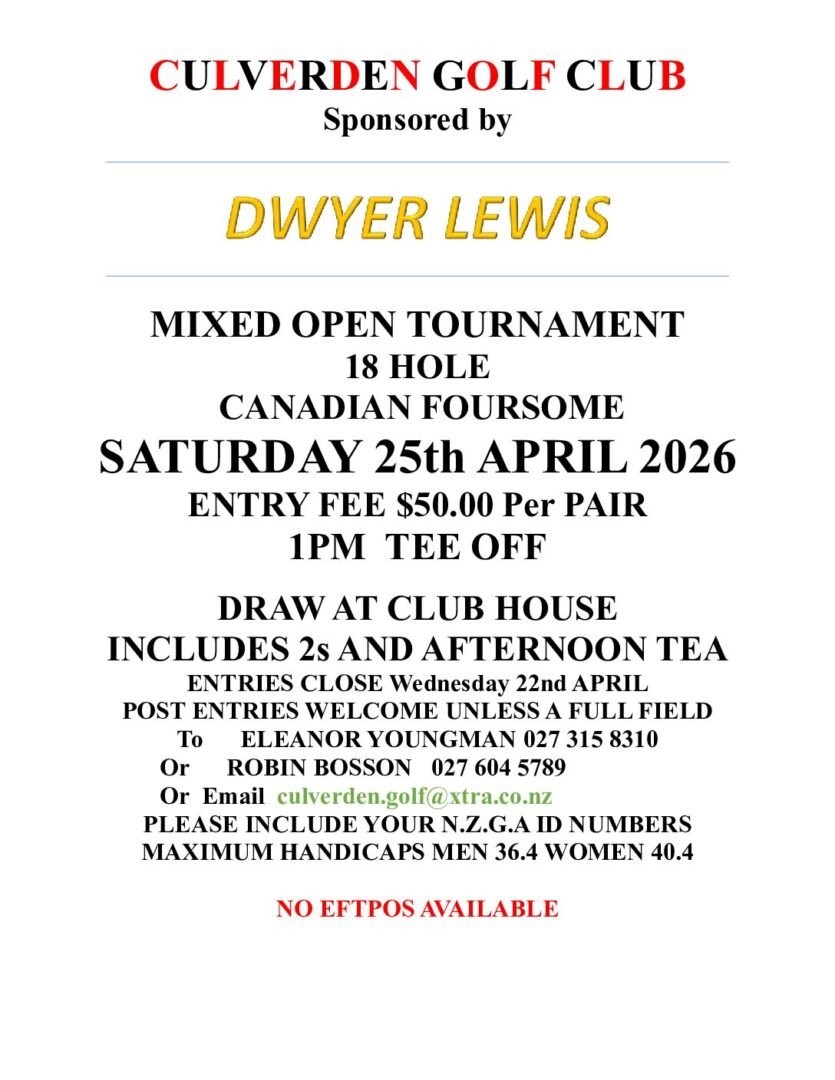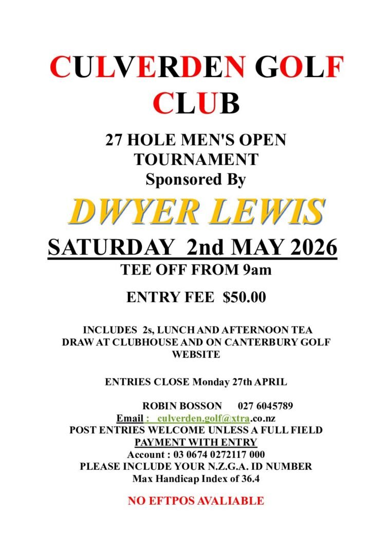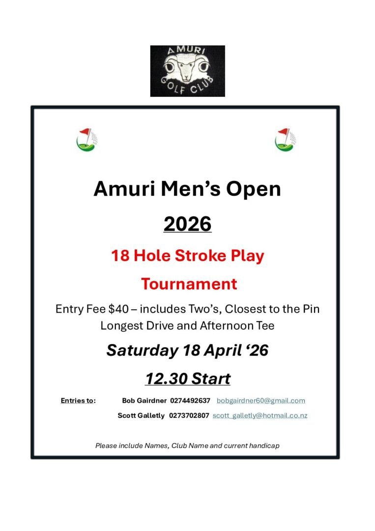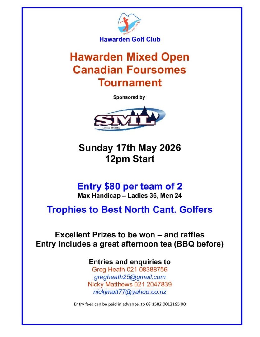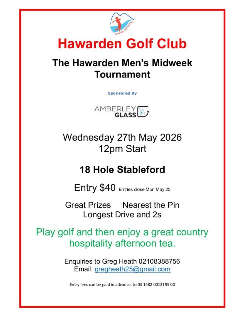These are the upcoming tournaments being held in the North Canterbury region. Other Canterbury tournaments can be found at https://www.canterburygolf.co.nz/events/district-calendar-2/
